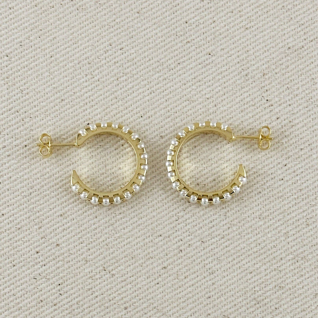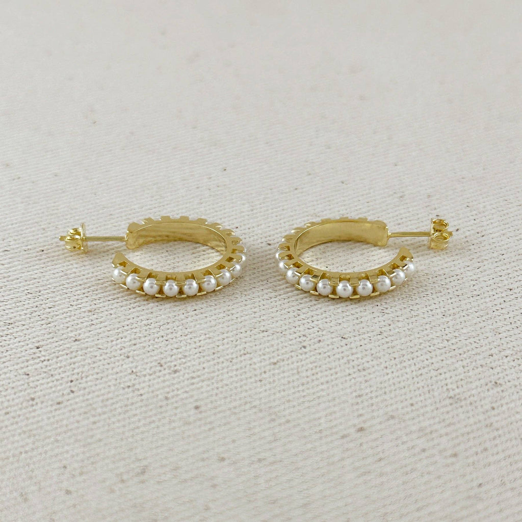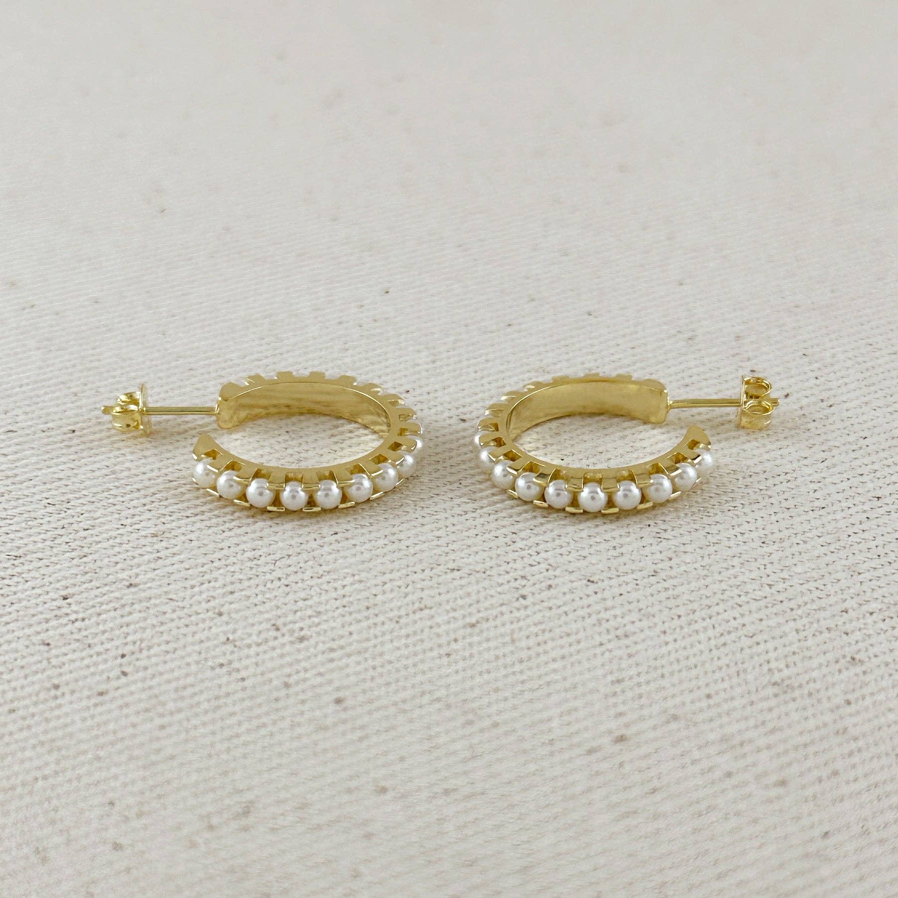 18k Gold Filled 22mm Pearl C-Hoop Earrings