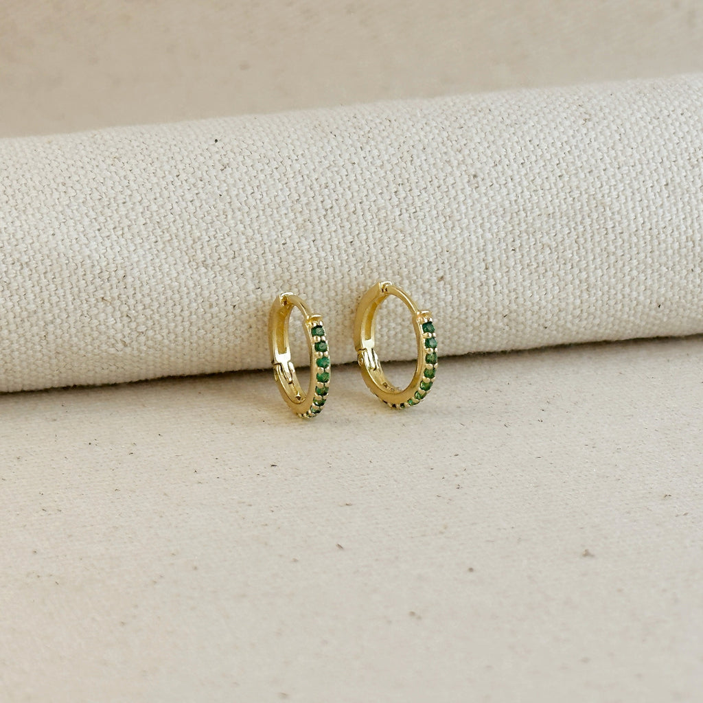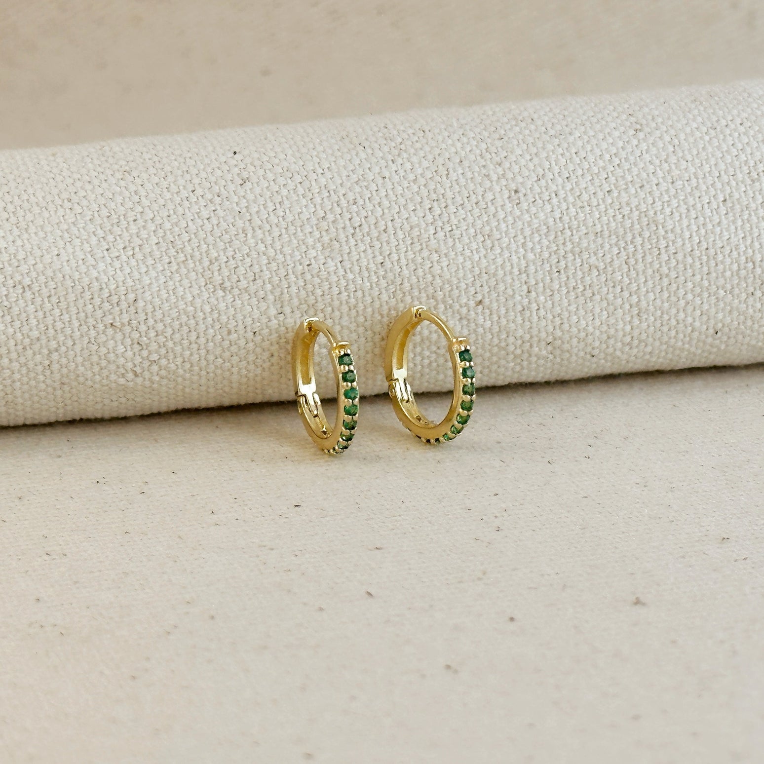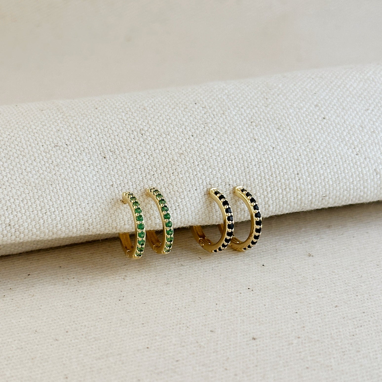 Cubic Zirconia stones in your choice of mysterious Onyx or Emerald Green. These elegant 15mm hoops feature a secure click-top closure and premium gold filled construction that offers lasting luxury at an accessible price. The hypoallergenic, nickel-free design ensures comfortable wear for sensitive ears. These versatile hoops will elevate any outfit from day to night. * 15mm diameter * Colors sold separately * Clicker type closure * Hypoallergenic * Waterproof * Handcrafted in Brazil