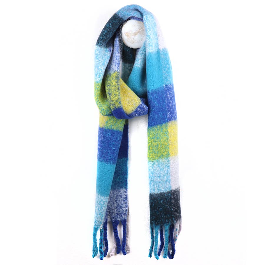 Wrap yourself in cozy vibes with this delightfully soft and fluffy check scarf, crafted from a thoughtfully sourced recycled yarn blend. Each scarf features charming tassels at both ends that add a playful finishing touch to your look. Whether you're layering up for chilly days or adding a pop of personality to your outfit, this versatile piece comes in a gorgeous range of colors to match your unique style. Perfect for anyone who loves eco-conscious style without compromising on softness and flair.