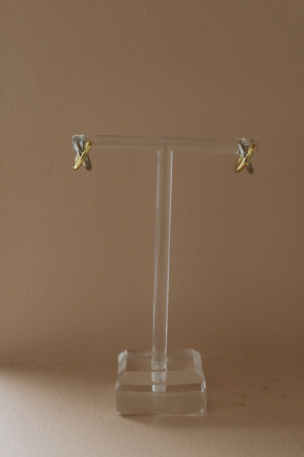 Elevate your everyday elegance with these X Cross Huggie Hoop Earrings, crafted in a refined blend of mixed gold and silver. Their minimalist design offers a subtle yet striking contrast, perfect for adding a touch of sophistication to any ensemble. Lightweight and comfortable, these hoops hug the ear gracefully, making them an ideal accessory for both day and evening wear.