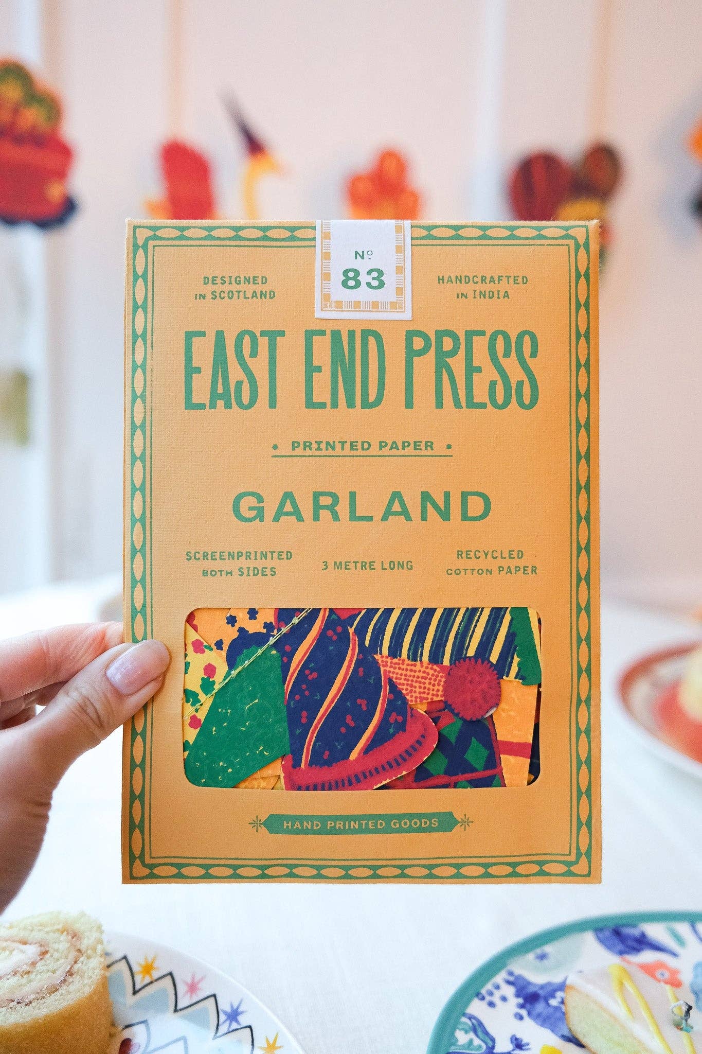 A lively parade of whimsical shapes, bursting with balloons, color, and birthday cheer are strung along this three metre celebration garland. * 3 meters long * Screen printed by hand on both sides by talented artisans in Jaipur * Sustainably made from recycled materials