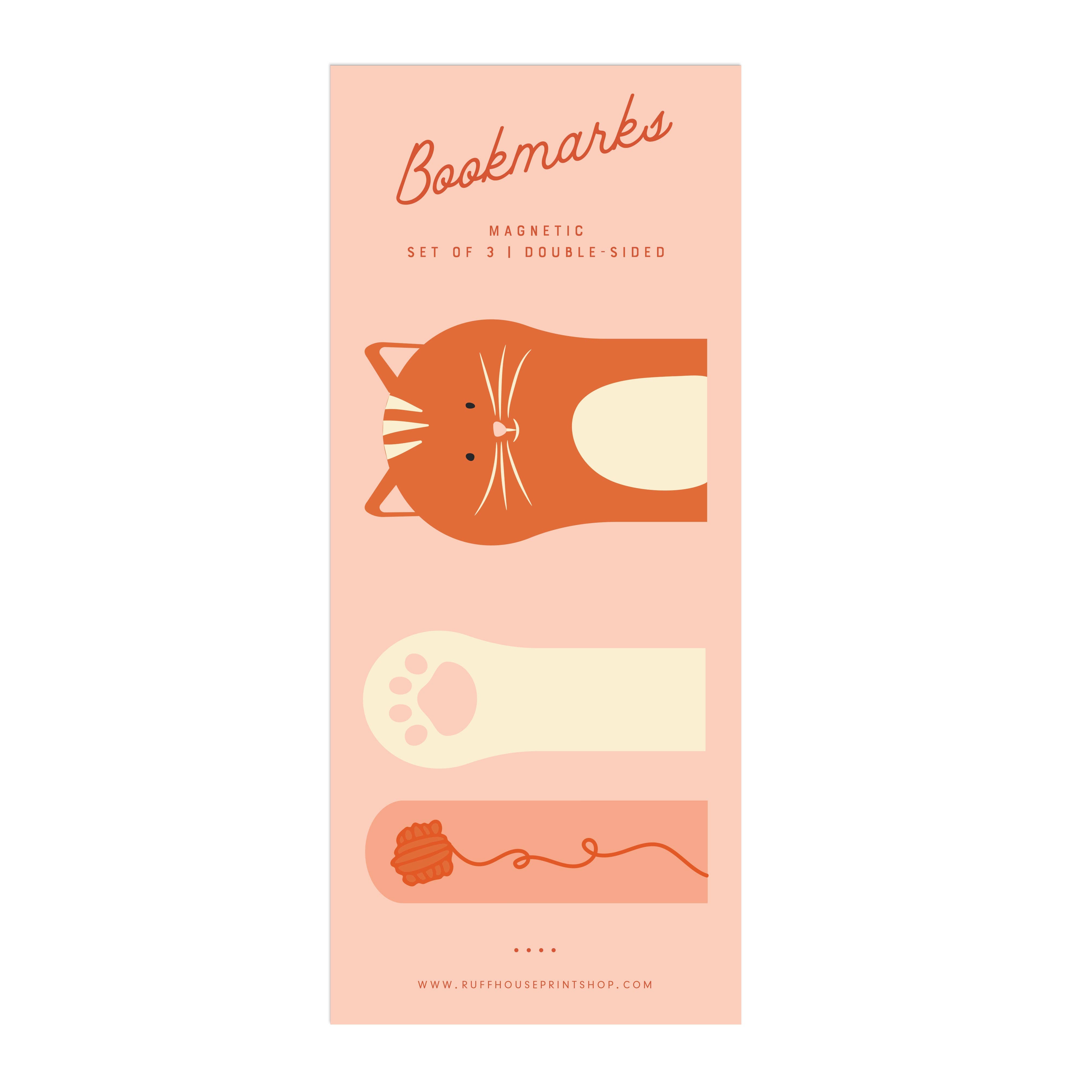 Cute, cozy, and perfect for cat lovers. Our Cat Magnetic Bookmark Set includes three double-sided magnetic bookmarks: a larger orange kitty marker, a paw flag, and a bookmark featuring a little roll of yarn. Clip them onto your page to keep your spot while you curl up with a good book.