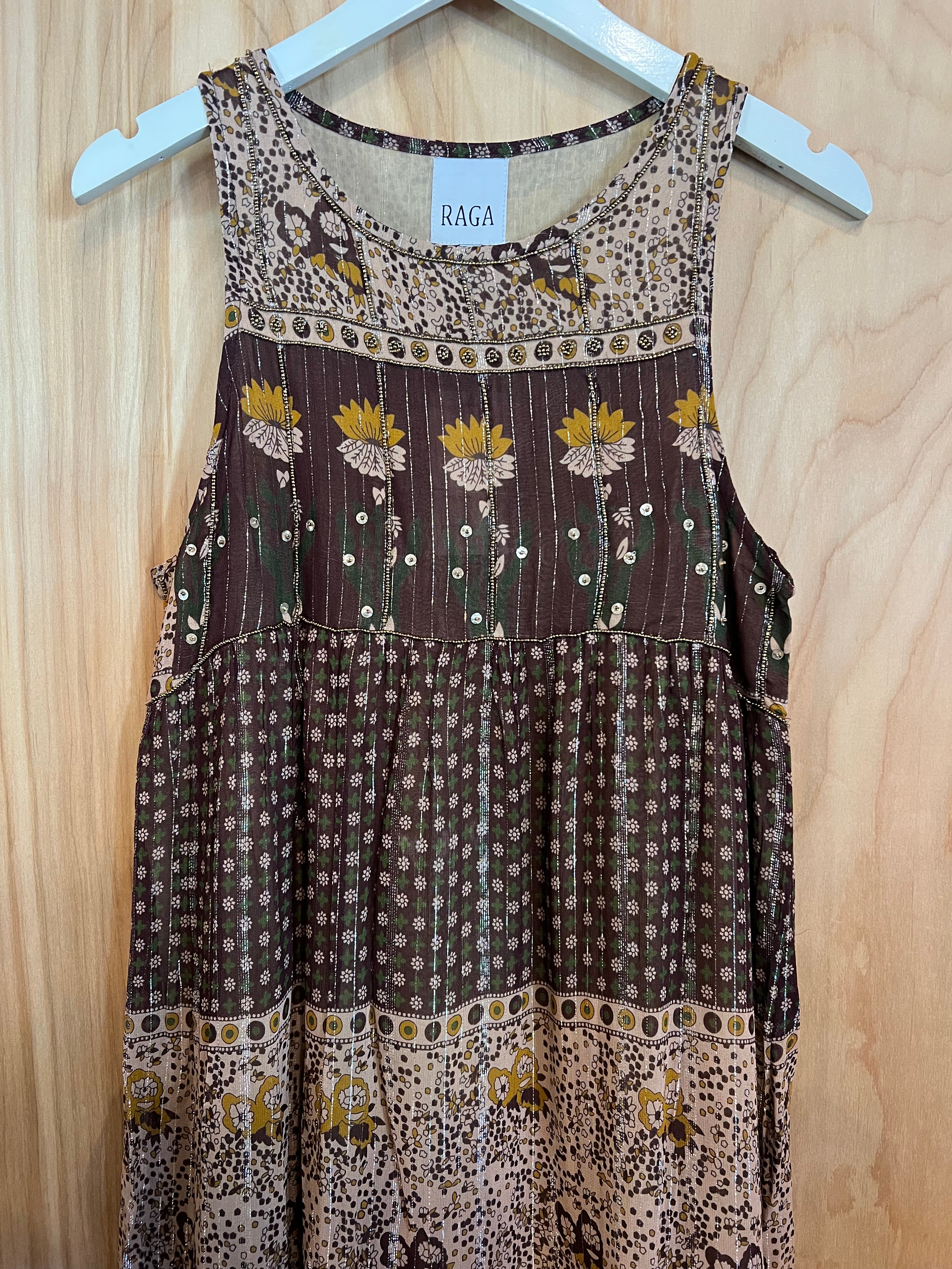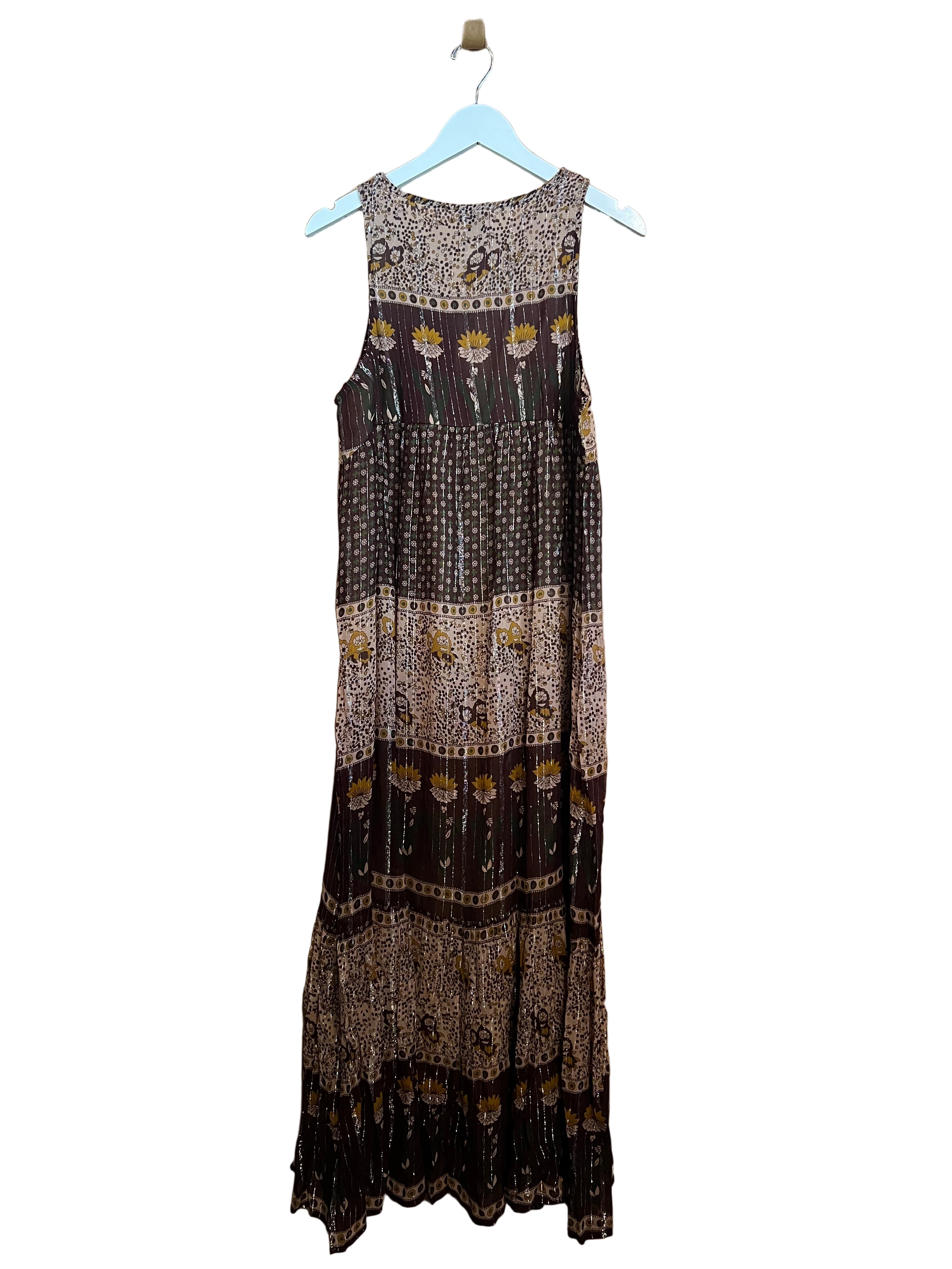 The Chinmayi Dress shines with sparkle thread woven through unique, eye-catching patterns. Its flowy, sleeveless design moves effortlessly, perfect for dressing up or keeping it casual. Whether you're headed to a party or a laid-back day out, this dress adds a playful, curated touch to your look.