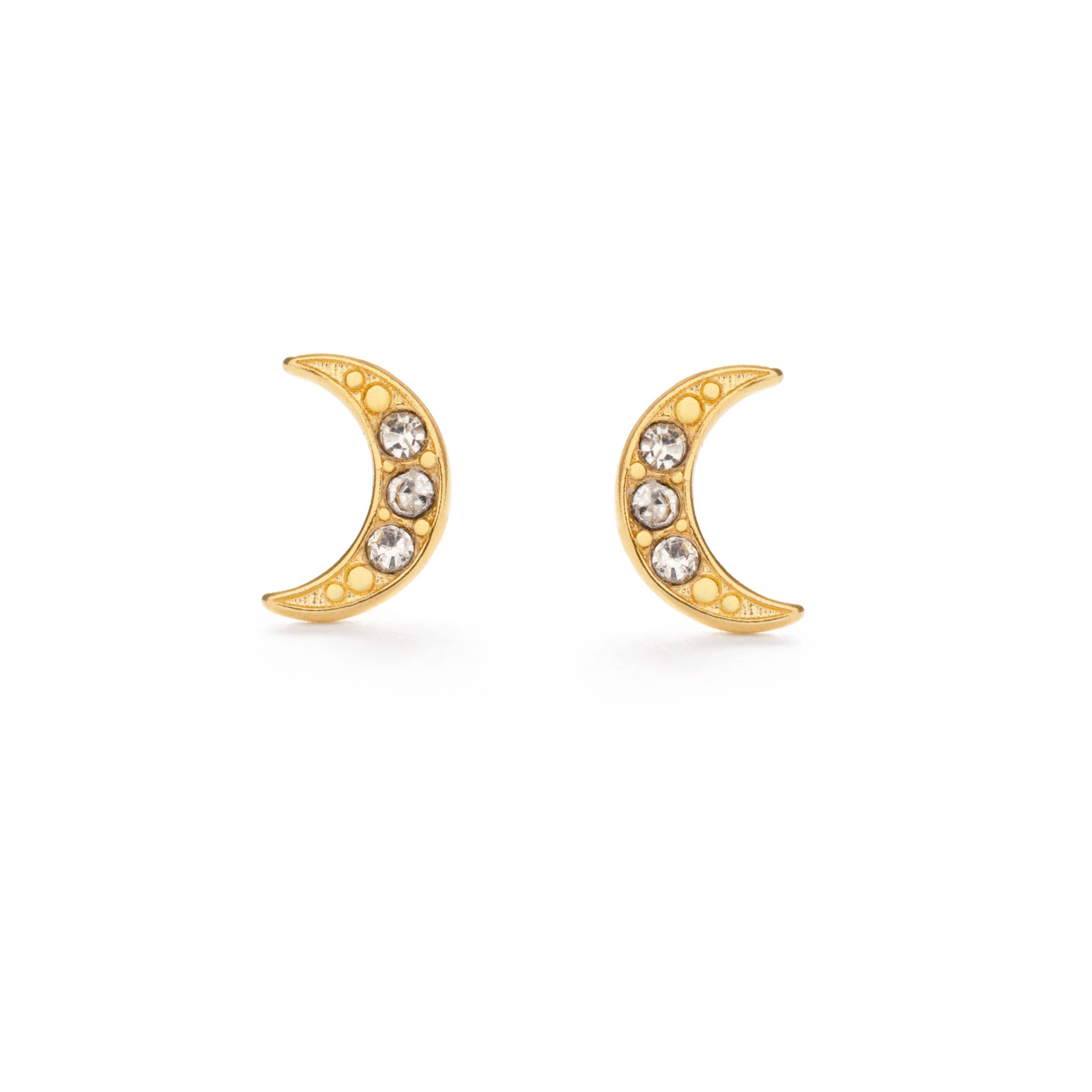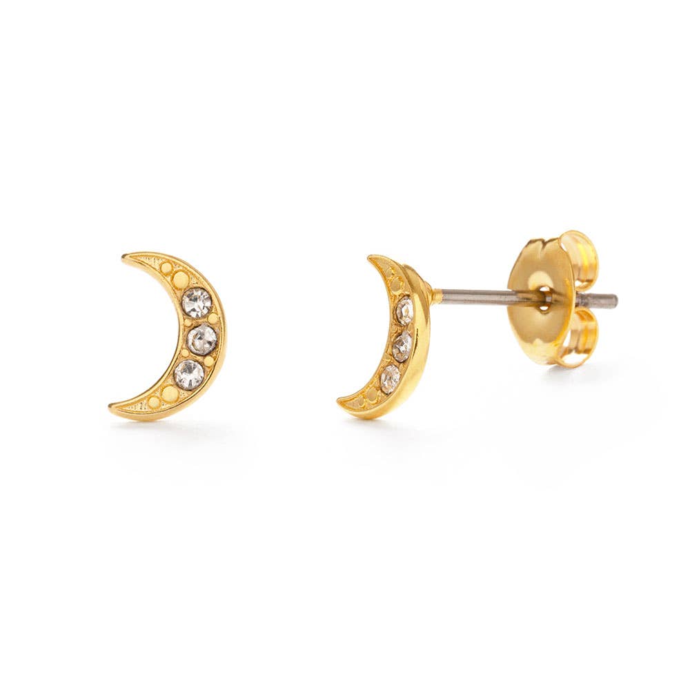 Here in the Valley of the Moon, we always look to the night sky for inspiration. These crescent moon studs have surgical steel posts and Czech crystals set into a 14k gold plated brass base. Designed and assembled in Sonoma California.