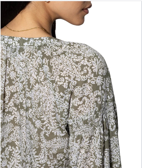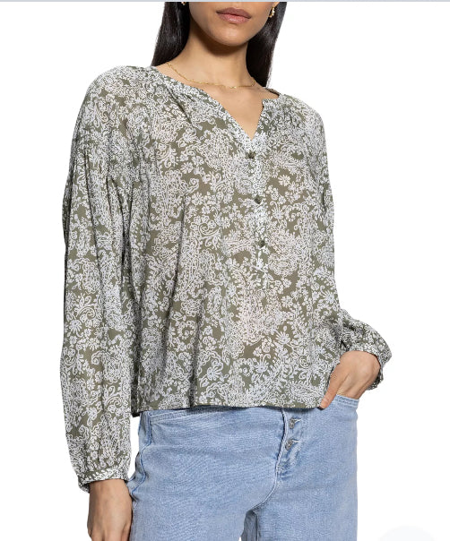 Slip into effortless style with this charming button blouse featuring a flattering V-neck and long sleeves perfect for layering or wearing solo. The pretty paisley print brings a feminine touch to your everyday wardrobe, while the unlined design keeps things light and breathable. Button closure makes getting dressed a breeze. Whether you're heading to brunch or the office, this versatile piece pairs beautifully with jeans, skirts, or trousers for a look that feels just right.