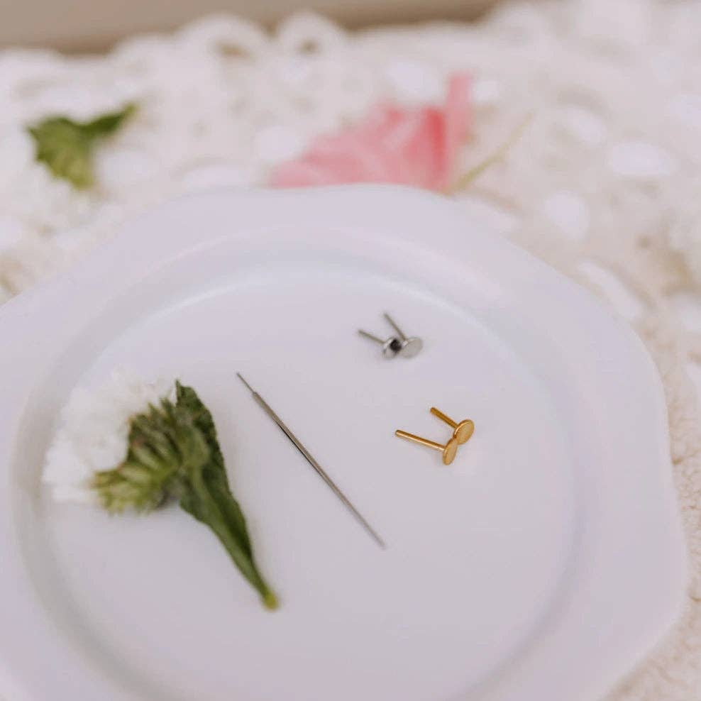 The Flat Back Applicator is here to make putting in your flat back earrings so much easier. It's designed to help you grip and insert flat back studs without the hassle! It’s made from medical-grade titanium, so it’s super lightweight, hypoallergenic, and safe for sensitive skin. Whether you're switching up your look or styling a new piercing, this applicator takes the stress out of the process!