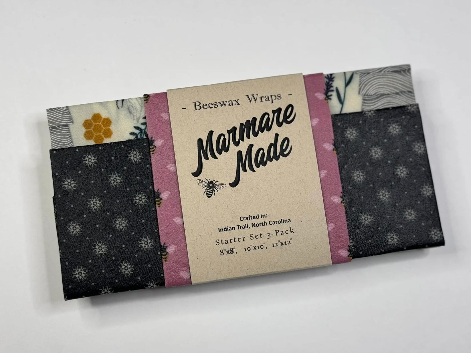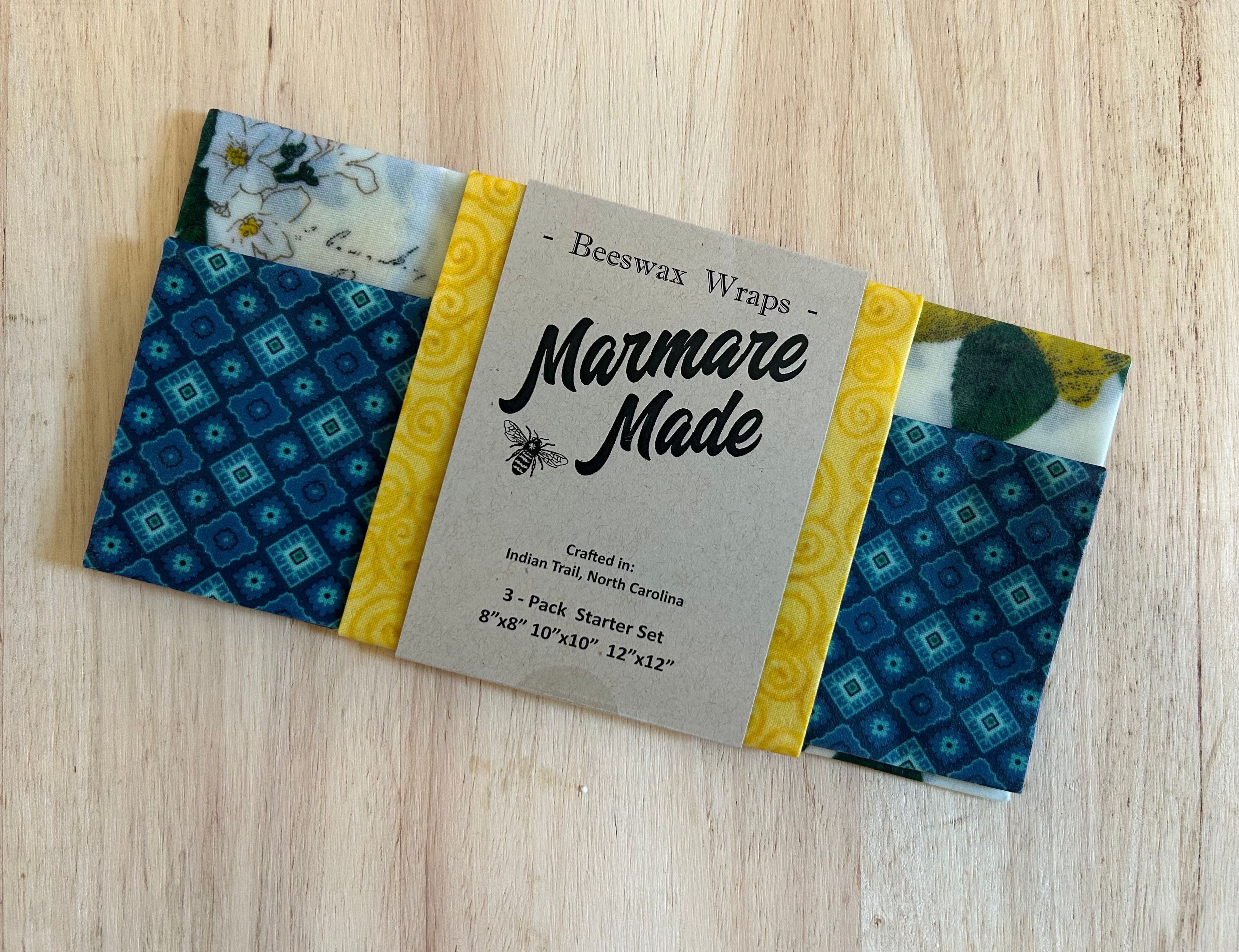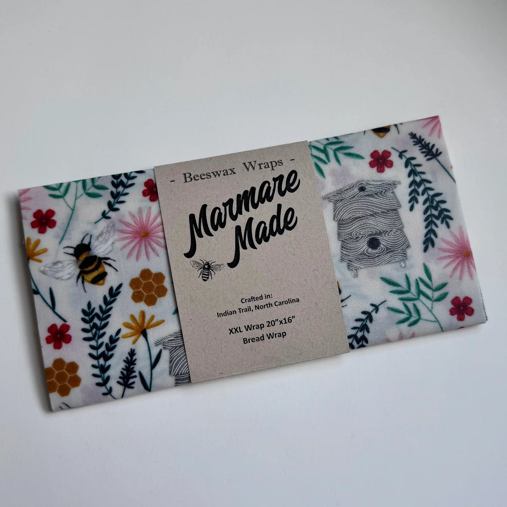 Each wrap is handmade in Indian Trail, North Carolina from 100% cotton fabric infused with our formula of organic beeswax, tree resin and Jojoba oil sourced in the USA.