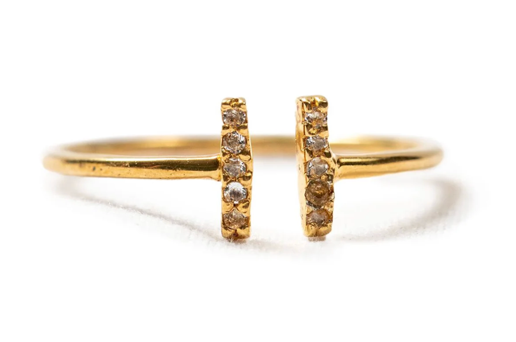 Double the sparkle, double the fun. This playful dual-bar ring features brilliant white topaz pavé stones set in gleaming gold-plated sterling silver. Modern, geometric, and just the right amount of dazzle for anyone who loves a statement piece with personality.