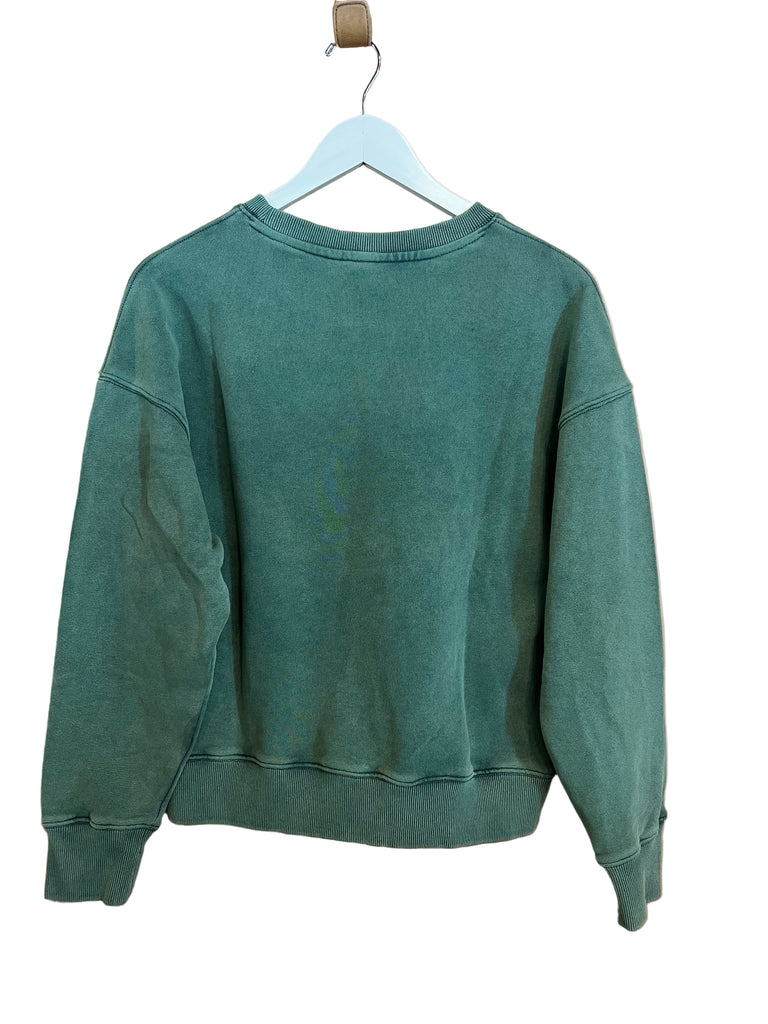 Made from 100% cotton, this cozy crewneck sweatshirt features ribbed cuffs on the neck, sleeves, and hem. It sports a playful graphic of a woman wearing an earring, making it both comfortable and fun to wear.