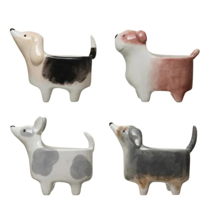 Bring some puppy love to your plant collection! Each hand-painted ceramic dog planter is a one-of-a-kind companion for your favorite greenery. Choose from four charming styles, each with its own personality and artistic flair.