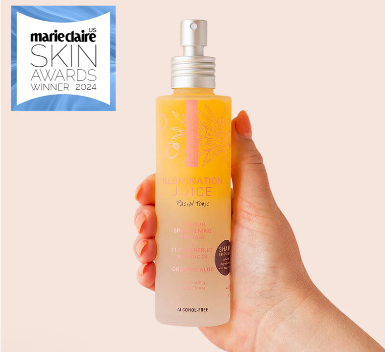 Why you'll love it: Delivered with pristine organic aloe juice and a touch of beta carotene, Illumination Juice® Facial Tonic delivers a trove of phytonutrients, vitamins and essential fatty acids to nourish your glow all day long. Even more – spritz throughout the day, and this tonic provides instant refreshment. Shake before use to blend the mega-vitamin formula.