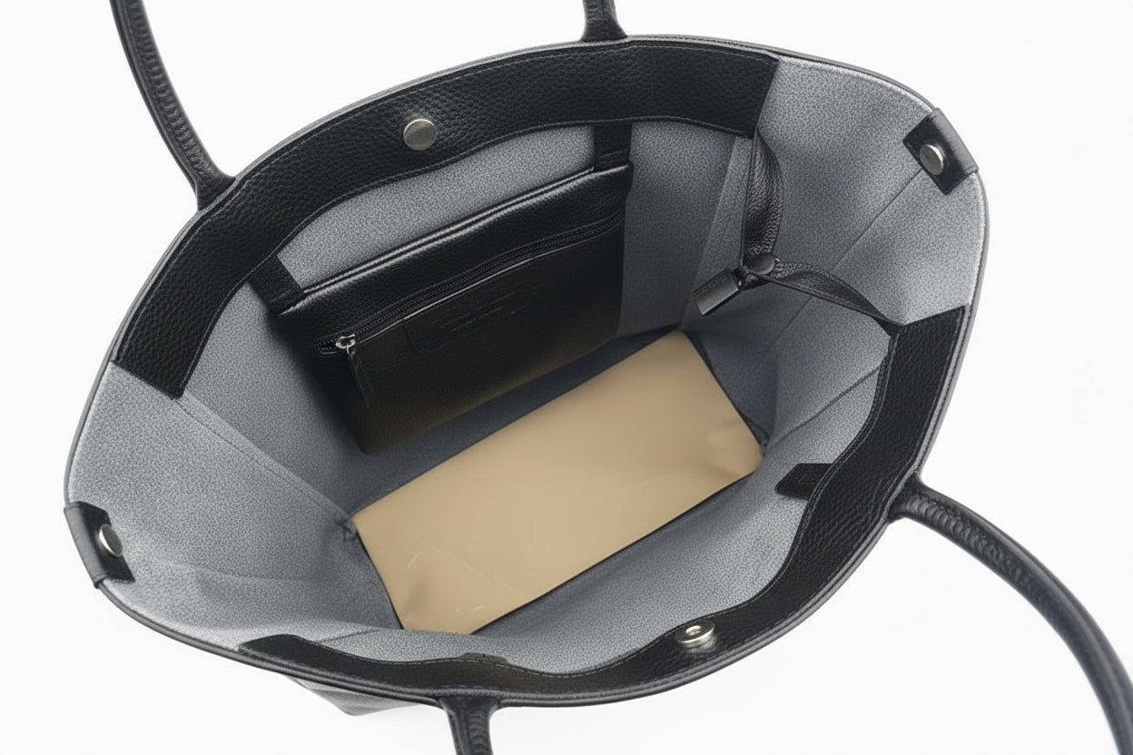 Women's Leather Handbag with 2 Short Handles, Zipper Closure, and Internal Pocket with Zipper Closure.