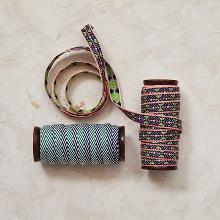 Jacquard Fabric Ribbon w/ Pattern on Wood Spool