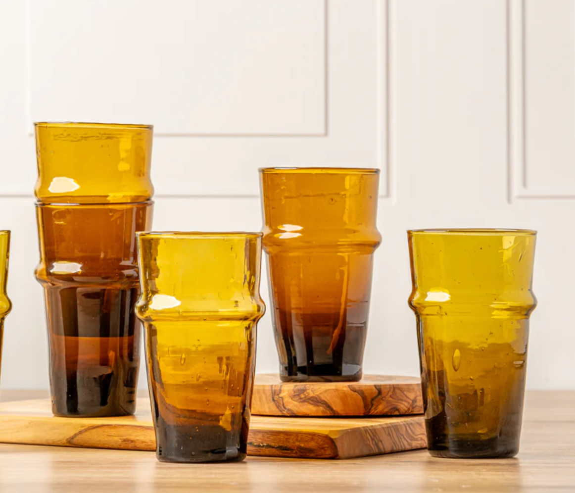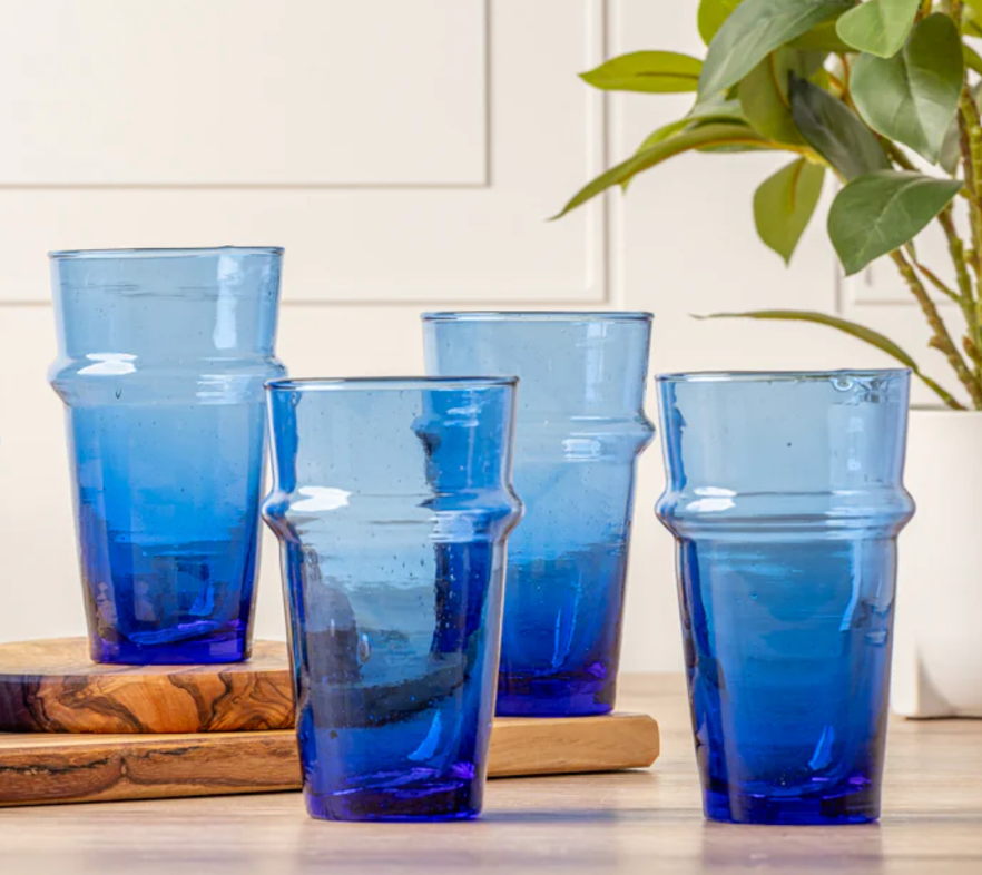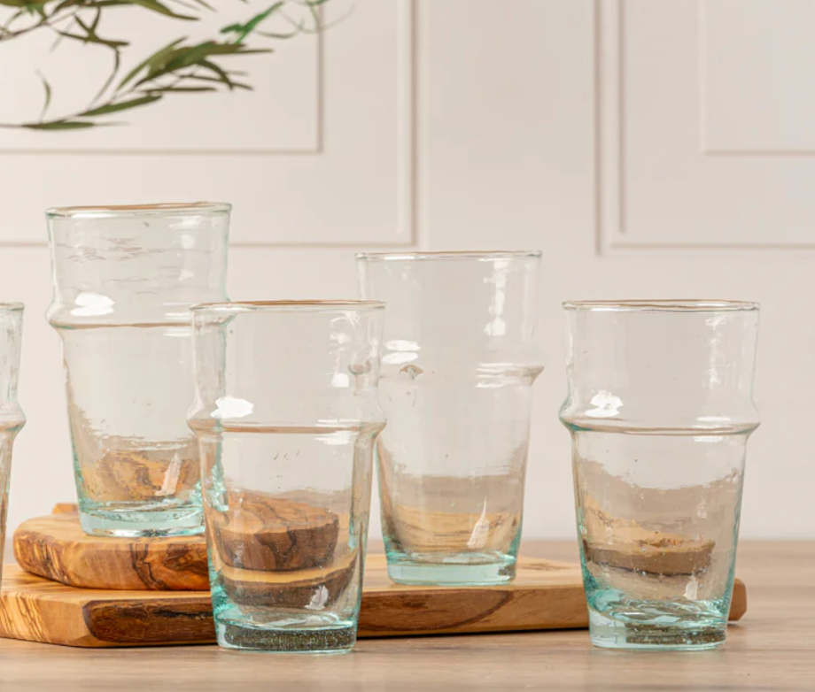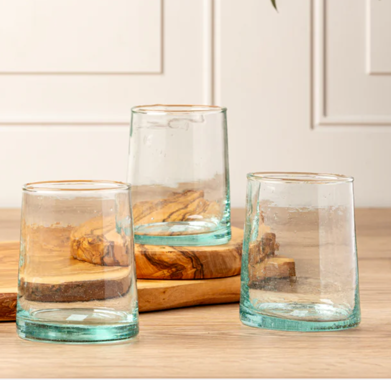 These tumblers are perfect for everything from your morning juice to your evening cocktail. Their mesmerizing coloring is made up of a variety of colors of recycled glass. Plus, their bubbled ridge feature provides a better grip than standard drinking glasses. Bottoms Up.