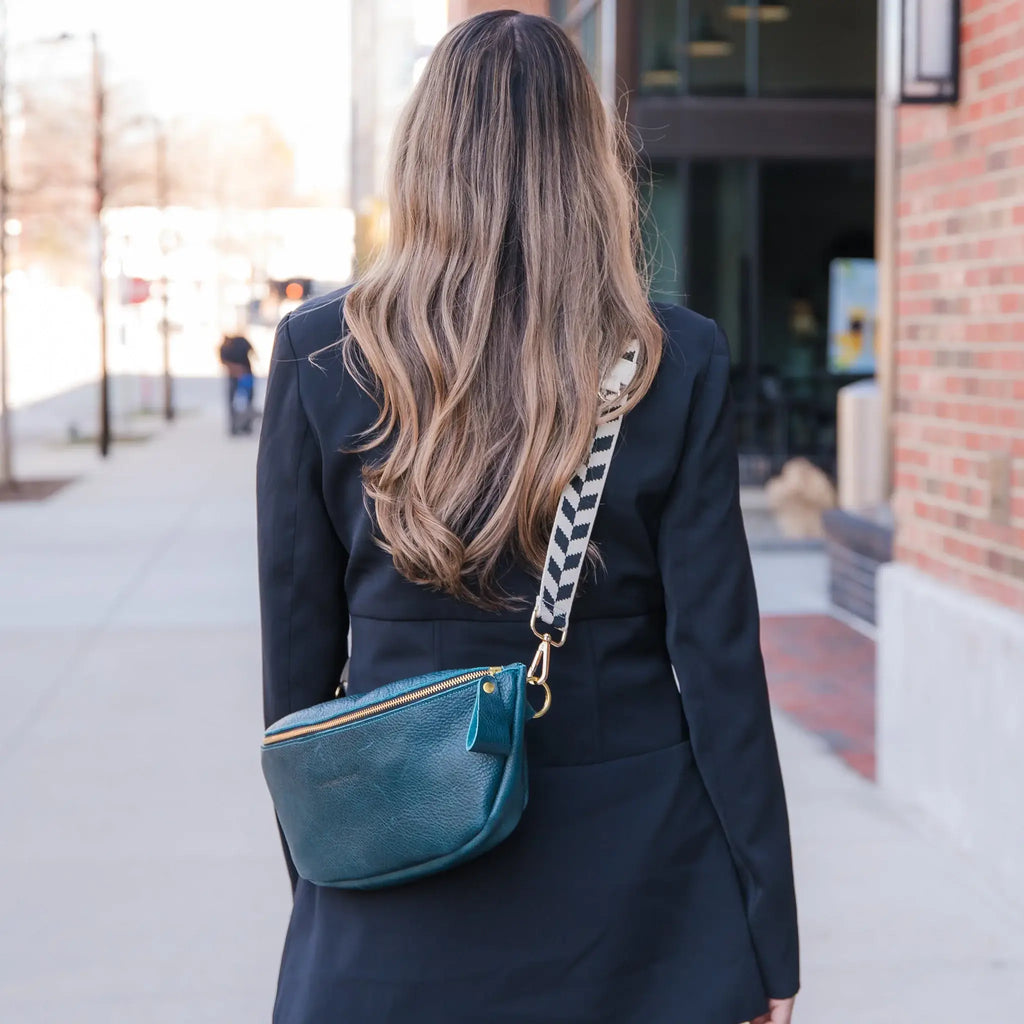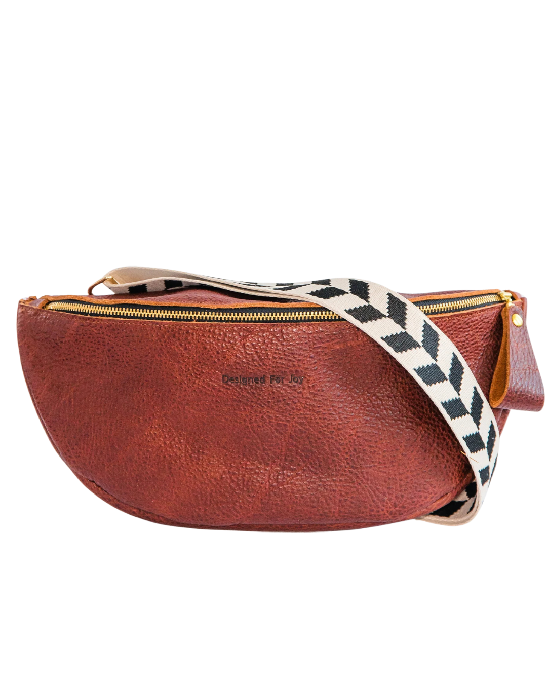 Discover the Rosie, a cross body sling bag that can be worn hands-free across the chest or around the waist. Handcrafted by skilled artisans, each purchase supports a nonprofit initiative empowering women through sustainable craftsmanship. She is convenient for travel and makes an impressive gift for the holidays, Mother's Day, anniversary, birthday, and any gift giving occasion.