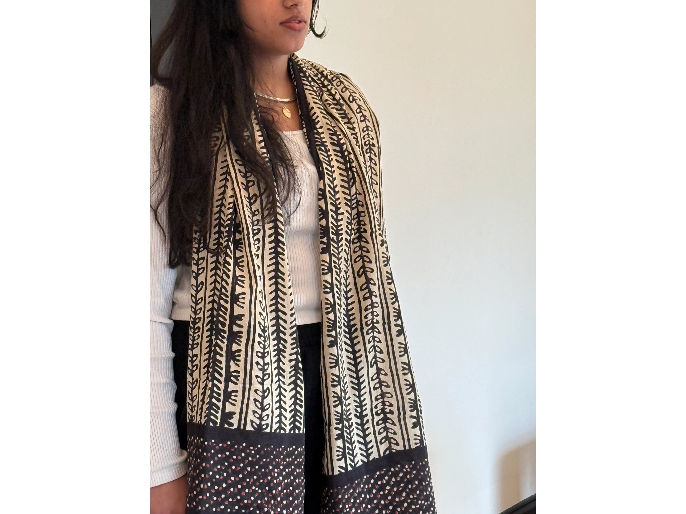 Wrap yourself in pure comfort with this breezy cotton stole that's perfect for layering with flair. Measuring a generous 21.5" x 76" this lightweight essential drapes beautifully over shoulders or pairs with any outfit for an instant style upgrade. Crafted from fine cotton, it's breathable and gentle on skin.