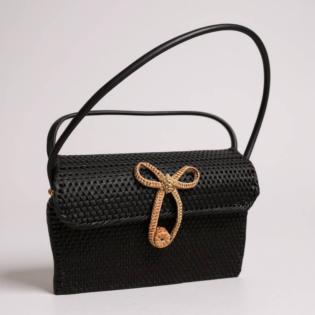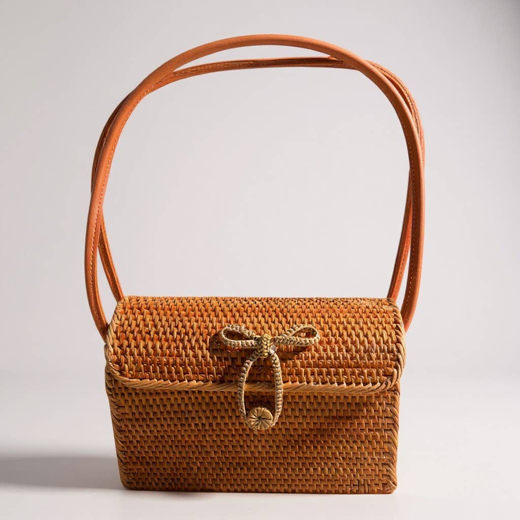 Key Features:- * Handmade from natural rattan / wicker * Durable leather shoulder strap * Decorative rope bow closure for added detail * Complements dresses, linen outfits, and resort wear *Each piece is individually handcrafted, ensuring authenticity and small-batch appeal.