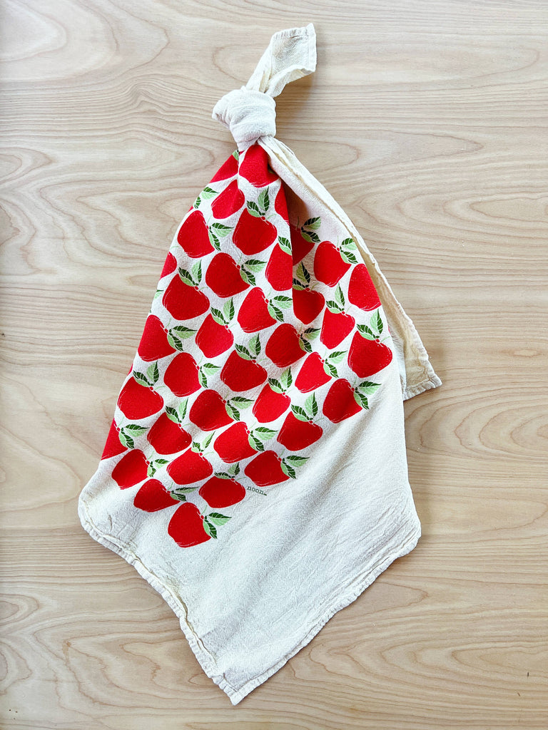 Made in America, machine washable, 28" x 29". These Flour sack tea towels are super soft, completely lint-free, absorb like a paper towel, and get better with every use. These pre washed towels are silk screened (printed area 14.5"x14.5") on unbleached, 100% cotton from the mid-west.