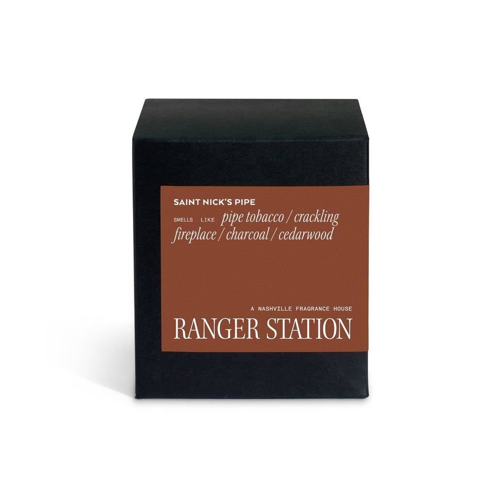 You brush off snow as you walk in from the frigid cold of the north pole. You find yourself in the Claus' very own living room. The Big Man himself is smoking a corn cob pipe next to a fireplace that Mrs. Claus never lets die. You notice the smell of charcoal from the largely untouched pile behind the house (because everyone has been good this year). You are greeted by warm smiles and a smooth glass of brandy as you settle into a large comfy chair next to the fire. Kick your boots off and settle in while the snow rages just outside. 8 oz. premium soy wax blend Hand-poured & packaged in Nashville, TN Matchbox included with every Ranger Station Candle 40+ hour burn time