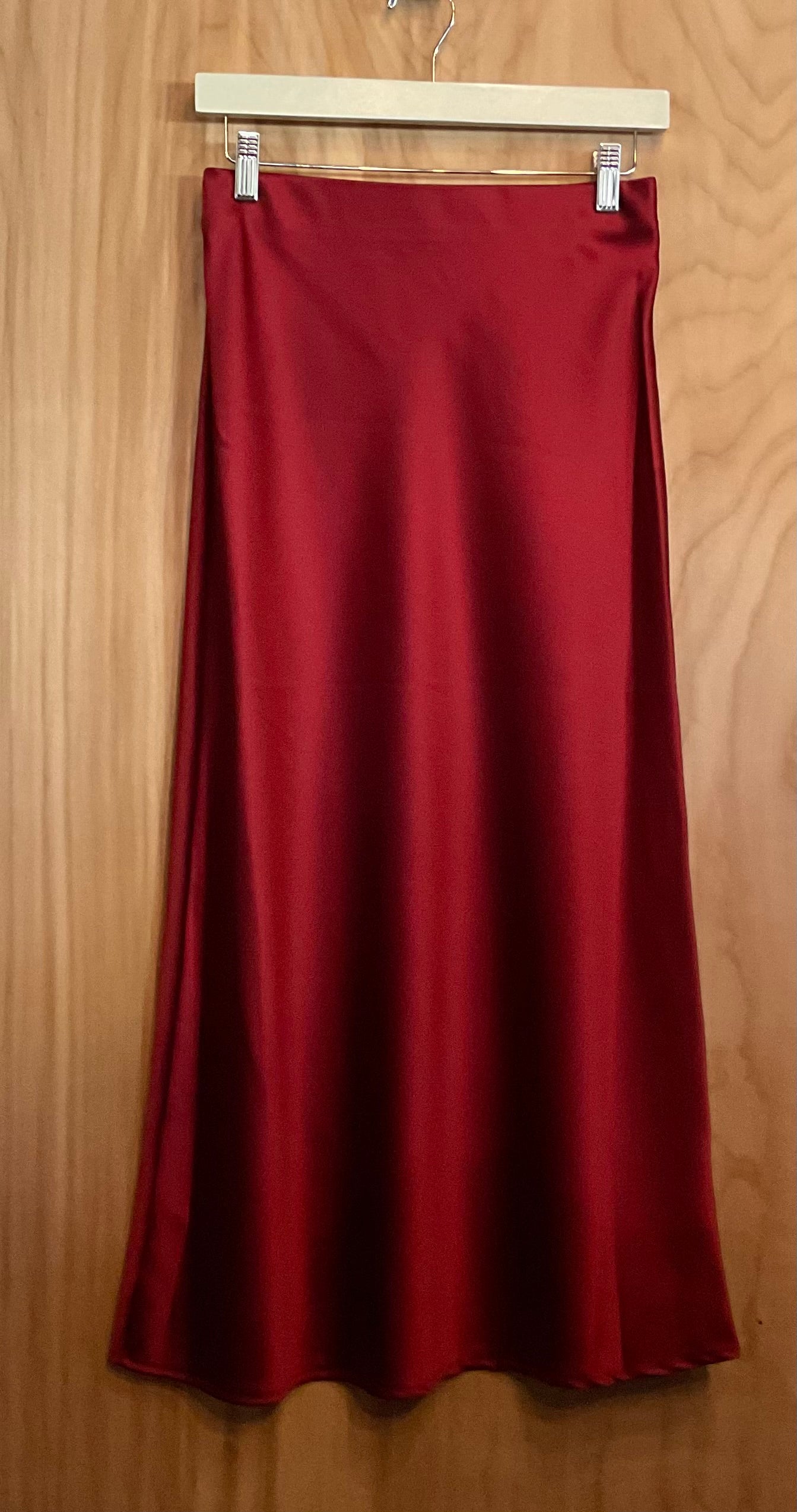 Slip into effortless elegance with this satin skirt that transitions seamlessly from brunch to evening out. The flattering bias cut drapes beautifully on every body, while the luxe fabric catches the light just right. Whether you're layering it with a cozy sweater or pairing it with a silky camisole, this festive essential works as hard as you do. A wardrobe game-changer that proves one piece really can do it all.
