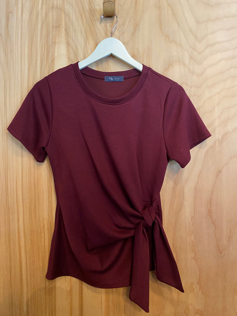 This adorable fall top in a plush scuba knit is your new wardrobe hero. Featuring a playful side tie that adds a flirty twist, it’s easy to dress up with your favorite skirt or keep casual with jeans. Cozy, stylish, and effortlessly fun—perfect for any occasion this season!