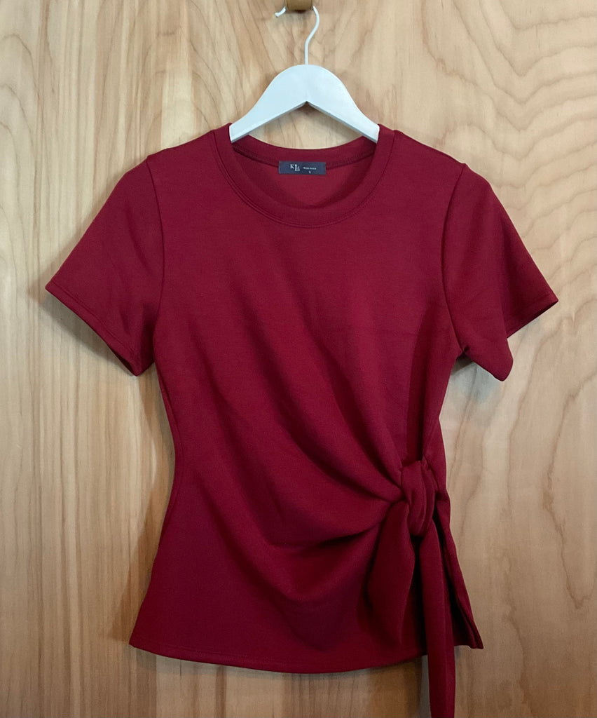 This adorable fall top in a plush scuba knit is your new wardrobe hero. Featuring a playful side tie that adds a flirty twist, it’s easy to dress up with your favorite skirt or keep casual with jeans. Cozy, stylish, and effortlessly fun—perfect for any occasion this season!