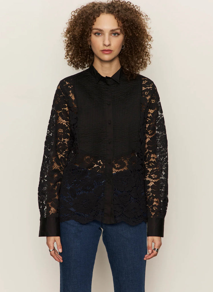 Elevate your formal game with this show-stopping lace tuxedo shirt that proves black-tie doesn't have to be boring. The refined spread collar and single button cuffs deliver classic sophistication, while delicate lace detailing adds an unexpected twist of personality. Lightweight and expertly fitted, it moves with you through cocktail hours and dance floors alike. Perfect for anyone ready to make a statement without sacrificing comfort.