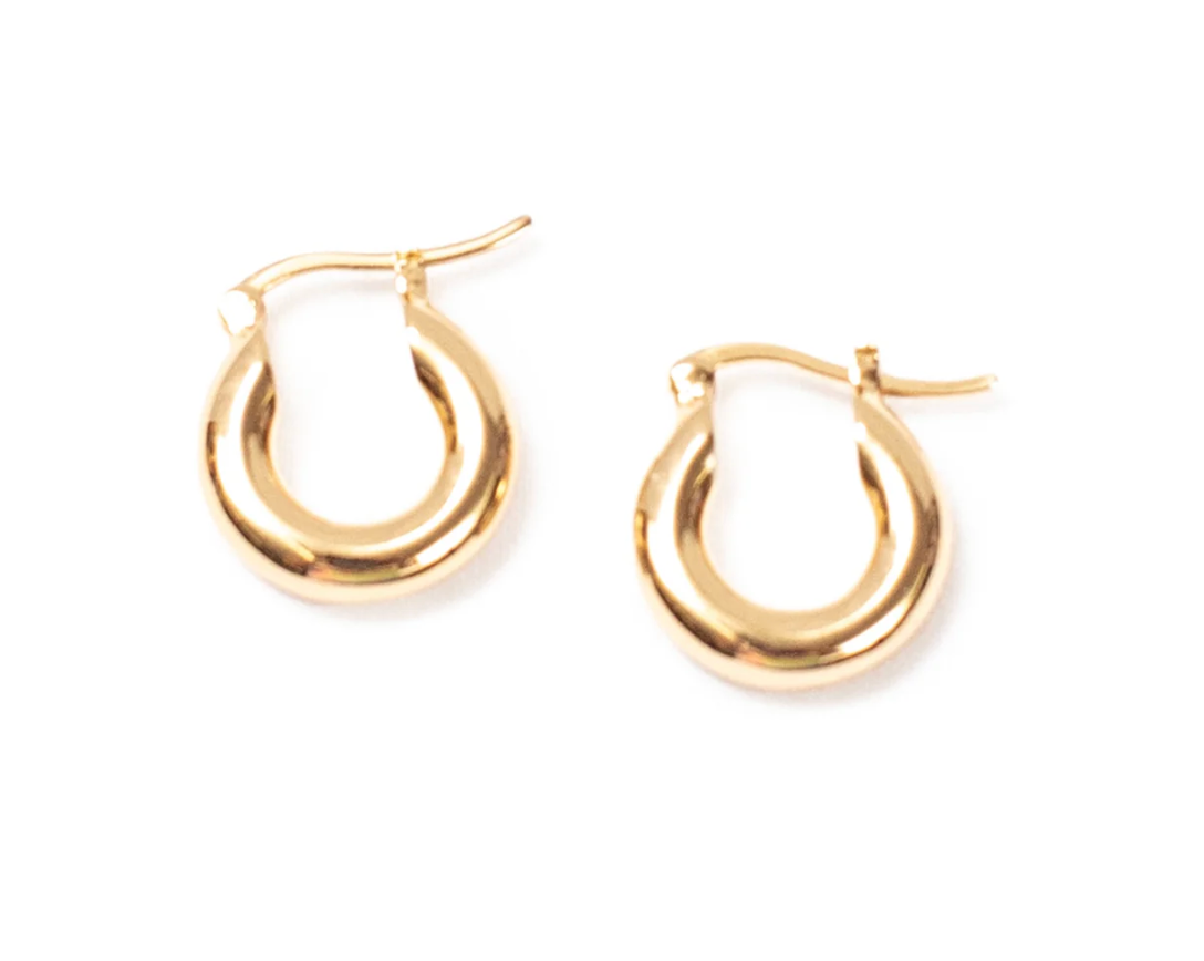 Make a statement with understated elegance. These small gold-plated chunky hoops pack serious personality into a petite silhouette, proving that mighty style doesn't require maximum size. Feather-light and endlessly adaptable, they transition seamlessly from casual daytime moments to evening adventures. Layer them for dimension, blend them with other pieces, or rock them solo—however you style them, you're guaranteed polished, effortless appeal.