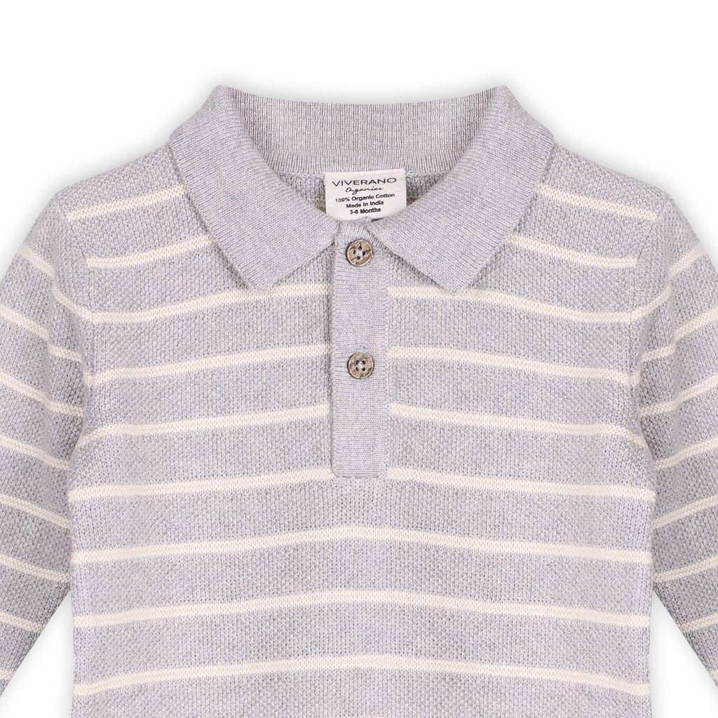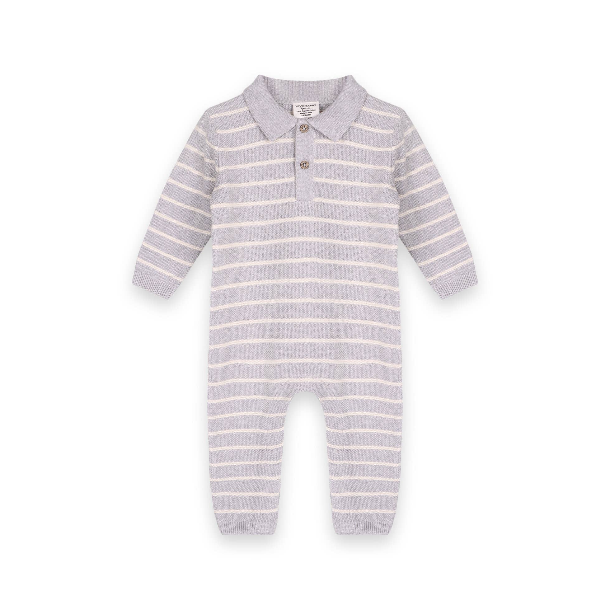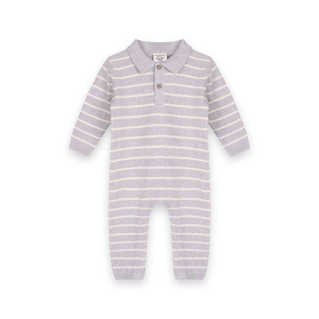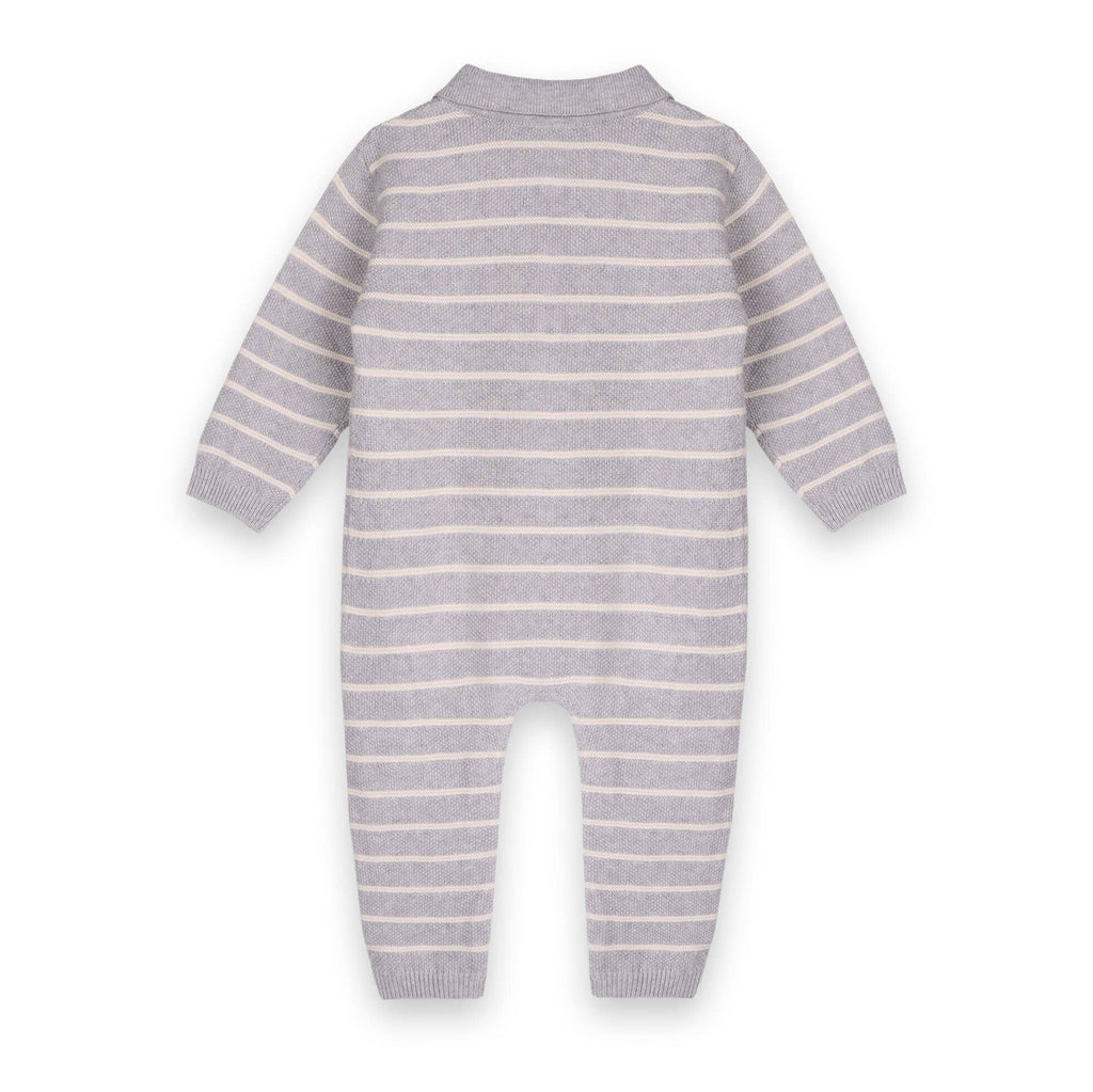 Stripe & Collar Sweater Knit Baby Jumpsuit