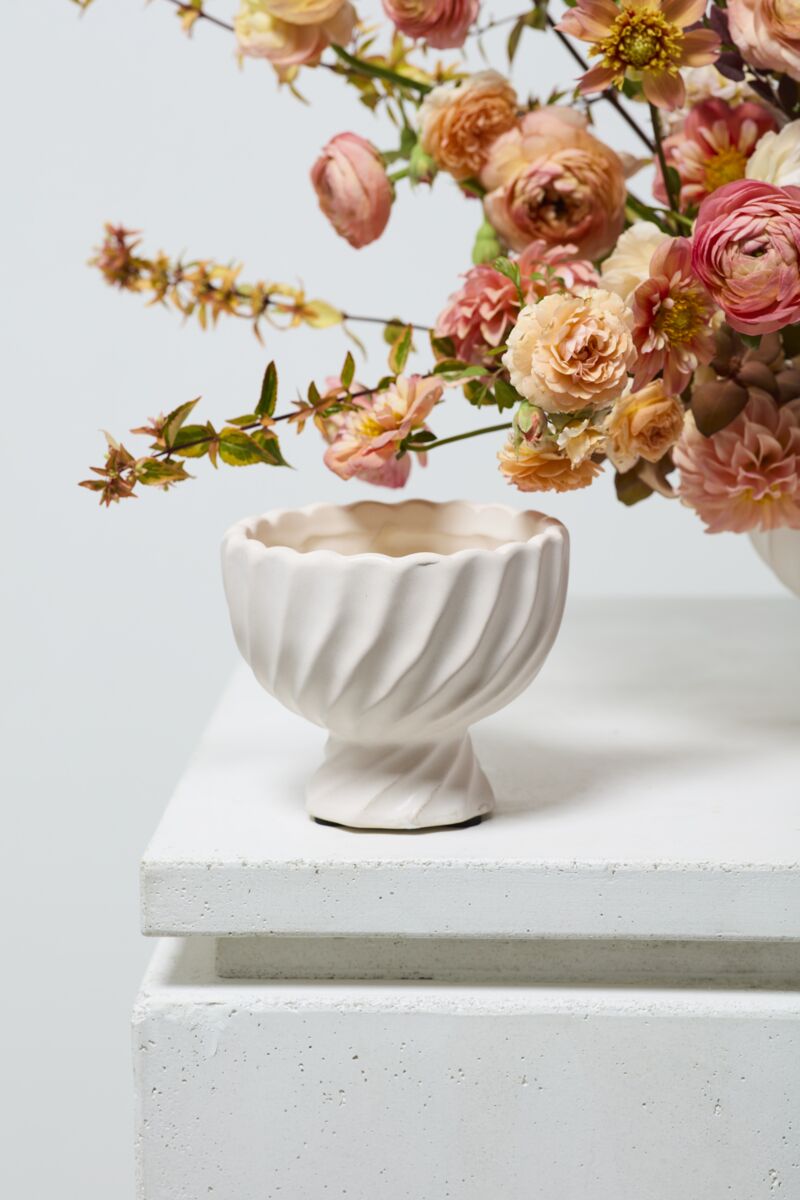 Display your florals with flair in this matte ceramic compote, where swirling textures add visual intrigue to any arrangement. Whether you're styling a wedding, event, or everyday bouquet, this versatile vessel plays well with all your favorite floral mechanics. A go-to piece that's as fun to use as it is beautiful to look at.