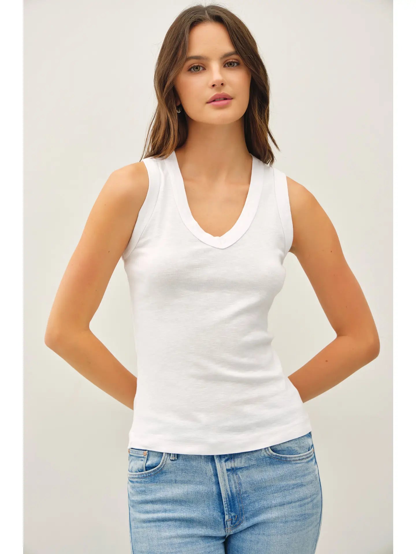 Upgrade your wardrobe with The Cooper Tank. Made with high-quality cotton, this ribbed v-neck undershirt is a must-have basic. Its adaptable design pairs perfectly with any of our button-down shirts. Enhance your style with this essential garment, perfectly dyed for a touch of sophistication.