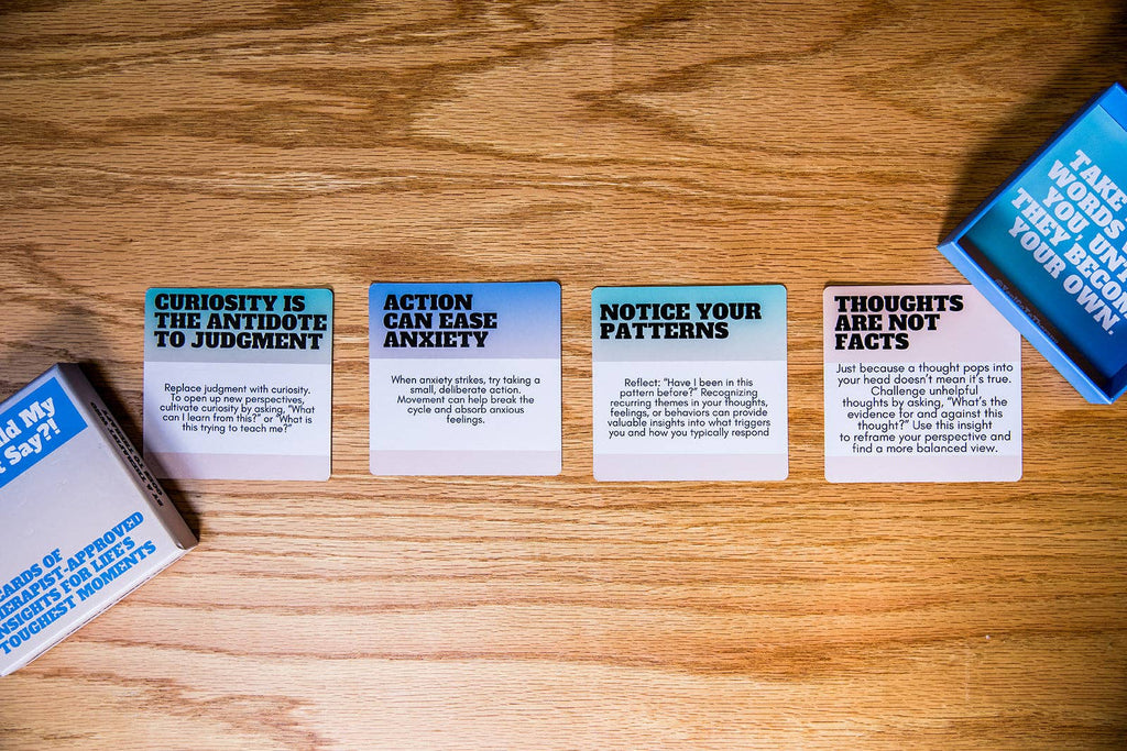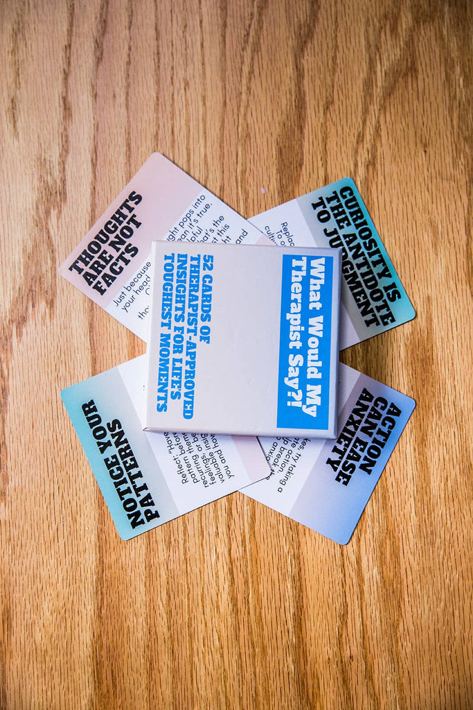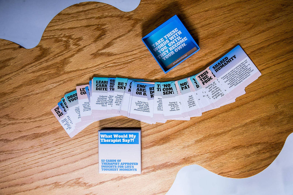 It's like having therapy on the go! This deck features 52 cards filled with the comforting, thought-provoking, and sometimes kick-in-the-pants phrases therapists say in session. I've been a licensed therapist and a global keynote speaker for nearly 15 years and I worked hard to thoughtfully curate these insights to capture the most helpful therapy thoughts in a relatable, understandable, helpful way. It's like a pocket-sized therapist, minus the session fee. This 52-card deck is packed with the things therapists say that stick with you...the ones that challenge you, soothe you, and help you rewire that inner critic voice.