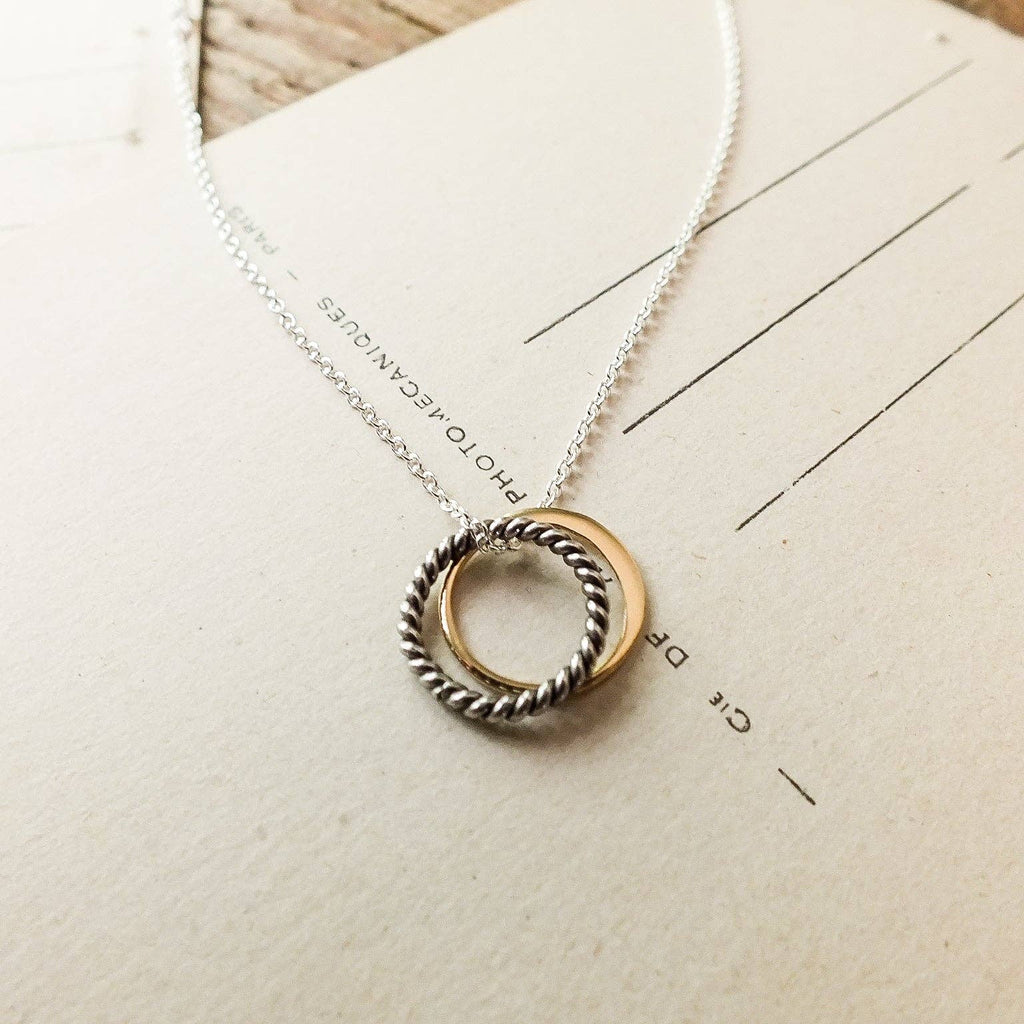 - One silver and one gold circle on sterling silver chain * on 18" sterling fine cable chain