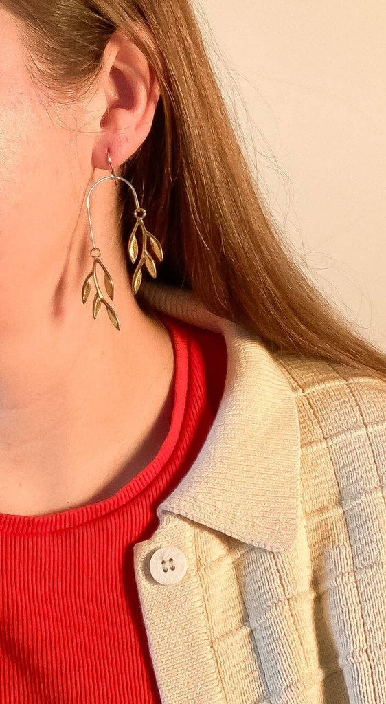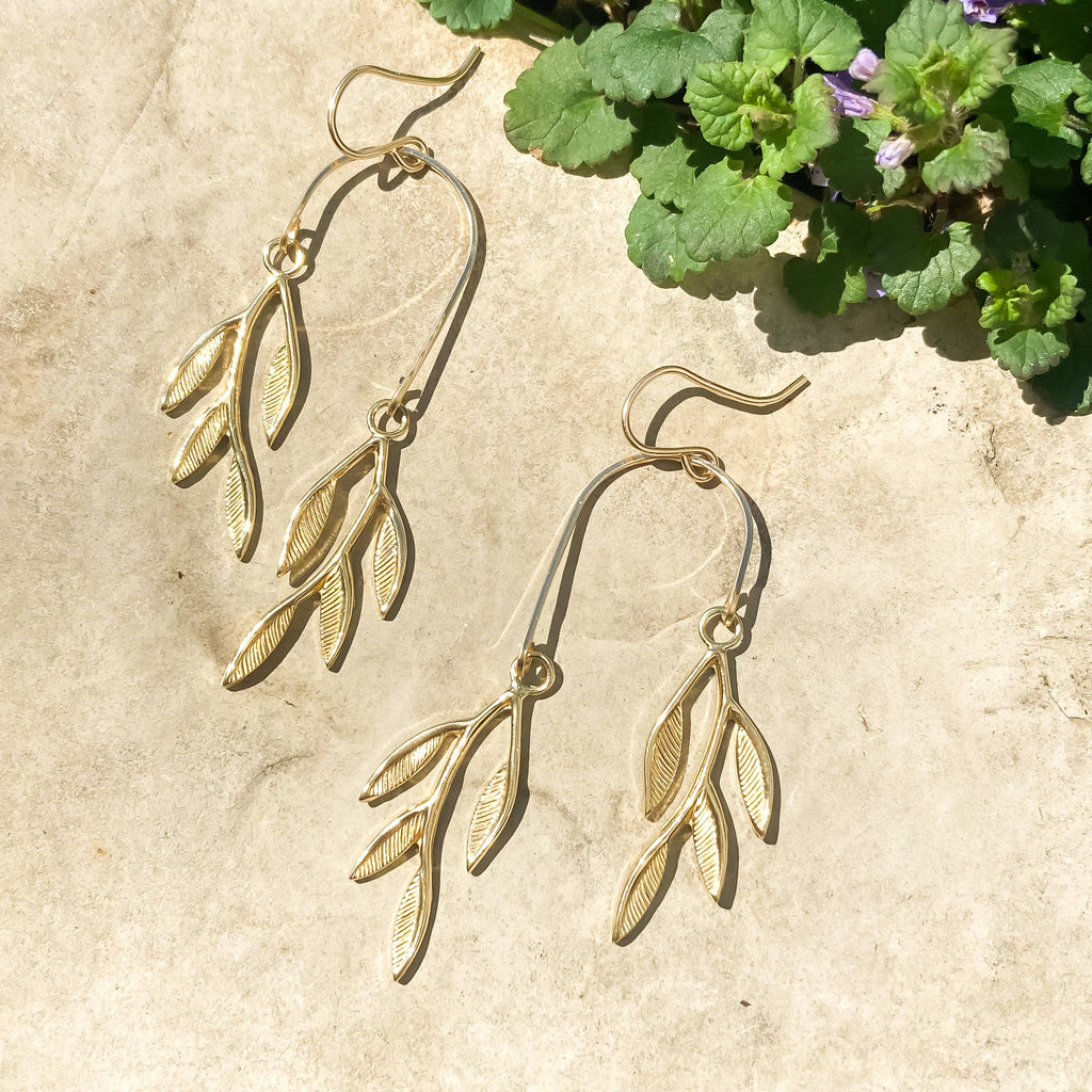 - Dangle with botanical flair in these whimsical vine-inspired earrings. Crafted from gleaming polished brass stampings paired with delicate 14kt gold-filled wire and hooks, they're a nature lover's dream. At 2½ inches long, they make a statement without weighing you down—perfect for all-day wear with serious style.