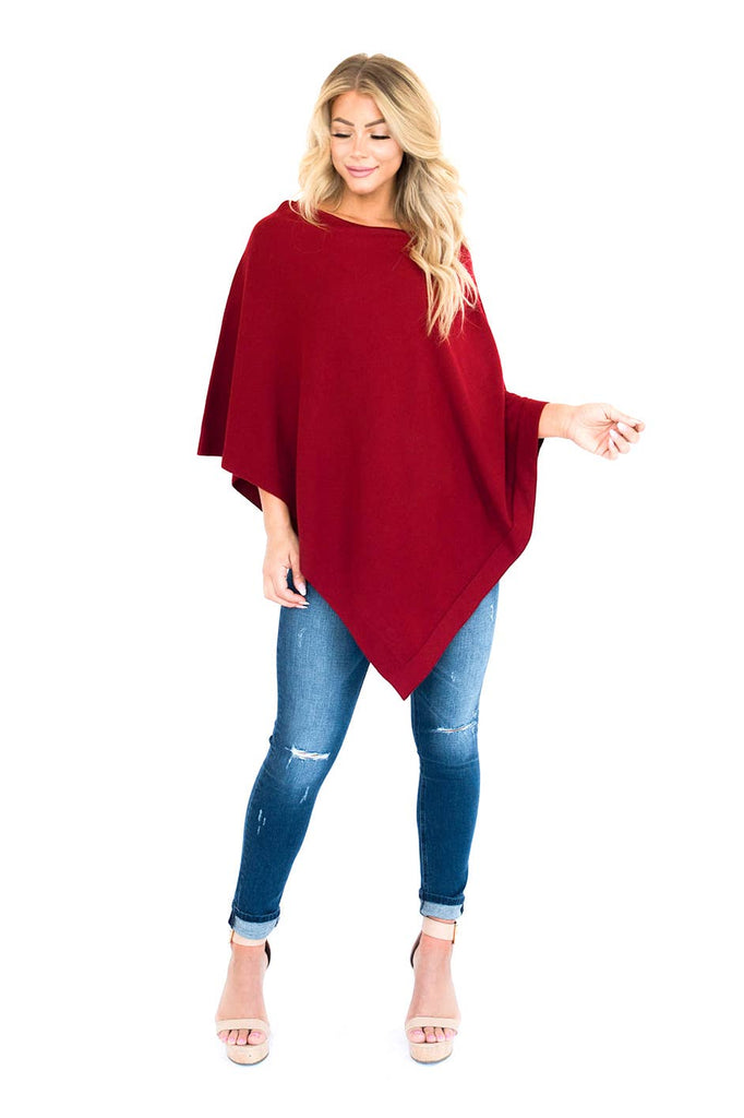 Sweater knit poncho topper, so many ways to style and wear it, quite versatile. Asymmetrical diamond shape, comfortable & universal fit, ONE SIZE fits most. Ultra-Soft, comfy, cozy, lightweight, non-itch, breathable and all-season. Fashionable, elegant, trendy, perfect for traveling - just throw on top on anything. Works great as a soft & non-toxic maternity nursing cover as well. Easy care - machine wash/ lay flat to dry, pilling resistant. Eco-friendly, non-toxic and sustainable product. Ethically & lovingly produced at a fair-trade facility in India.