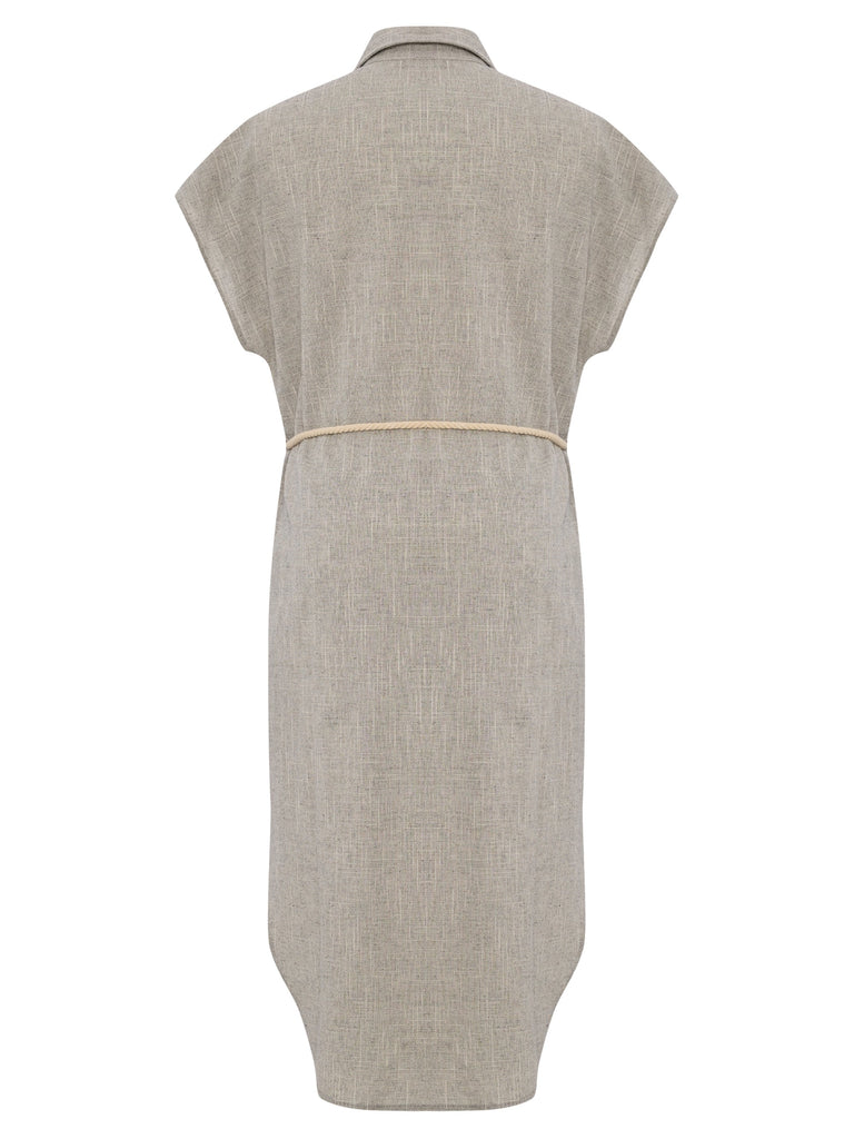 This effortless shirt dress blends relaxed sophistication with timeless appeal. Featuring a breezy, oversized silhouette, delicate cap sleeves, and a button-down front adorned with natural shell buttons, it offers a refined yet laid-back aesthetic. The detachable rope belt cinches the waist for a touch of structure, while the soft, breathable fabric ensures all-day comfort.